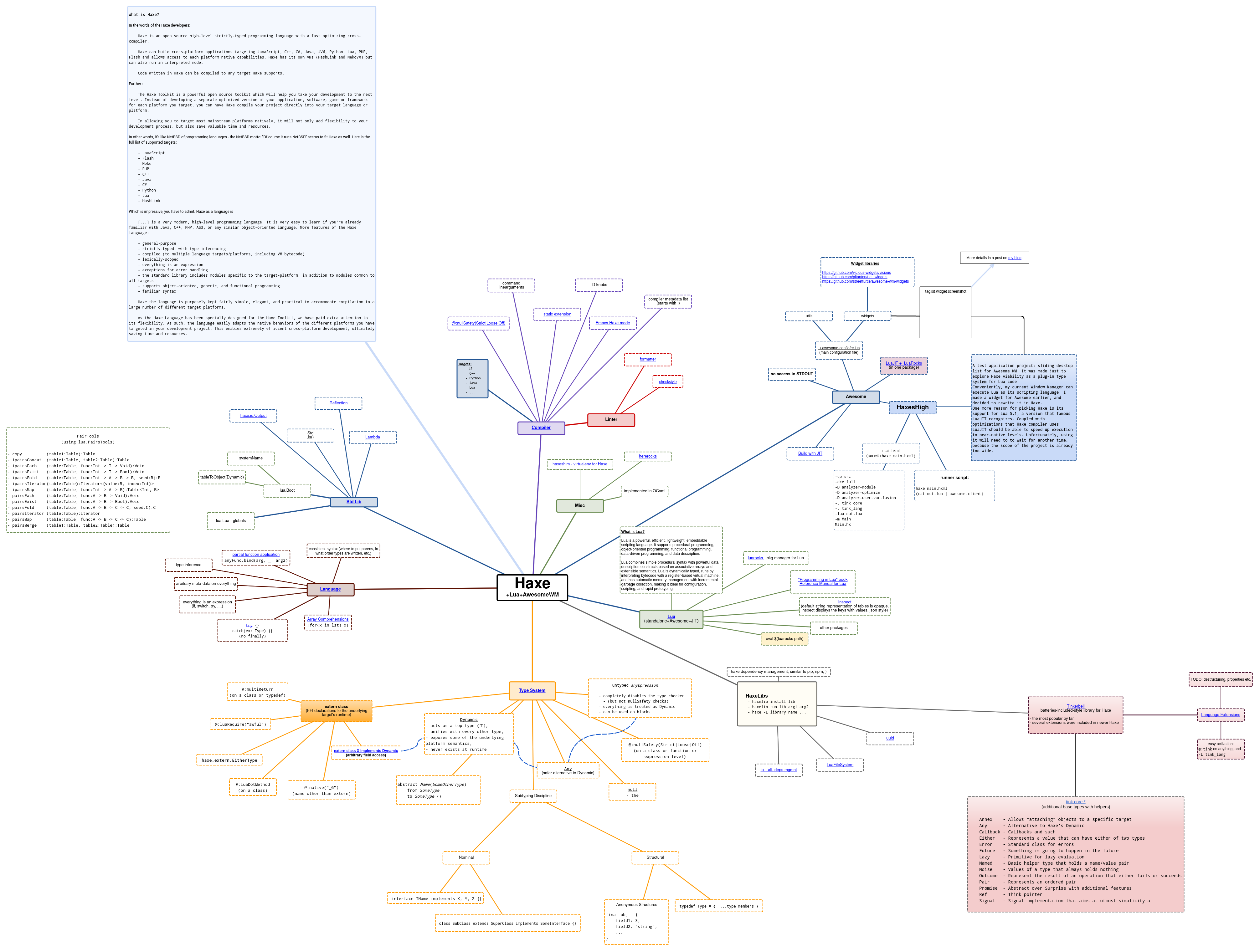 I know and like pure-text diagramming solutions, but they don't work that well for diagrams designed to span multiple displays in width or height. Or put another way - my editor, as glorious as it is, is not designed for rapid zoom-in/zoom-out on various parts of an 80000x80000 rows/cols text file. I want to be able to work in an interactive environment, where I can rapidly switch between the overall outline view and the focused, detailed view of just a few nodes. Moreover, I need to able to embed (and preview if possible) different kinds of content, from syntax-highlighted text to images to videos, plus it should render natively in a browser (hence the SVG).