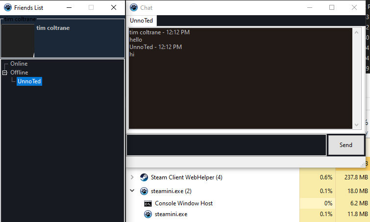 I'm building a lightweight Steam chat client with GoVCL so that I don't need the official client that takes like 200-300mb ram just to show text [3].